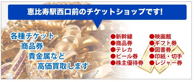 新幹線チケット(回数券)・切手・印紙・itunesカード等格安販売中!恵比寿西口よりすぐ!